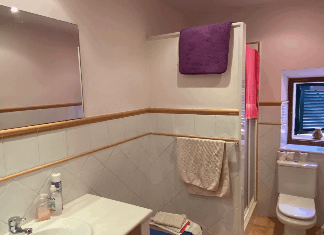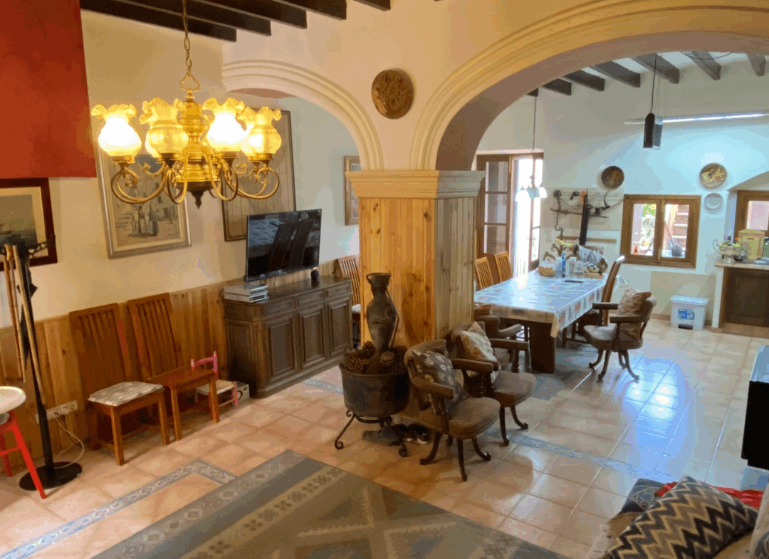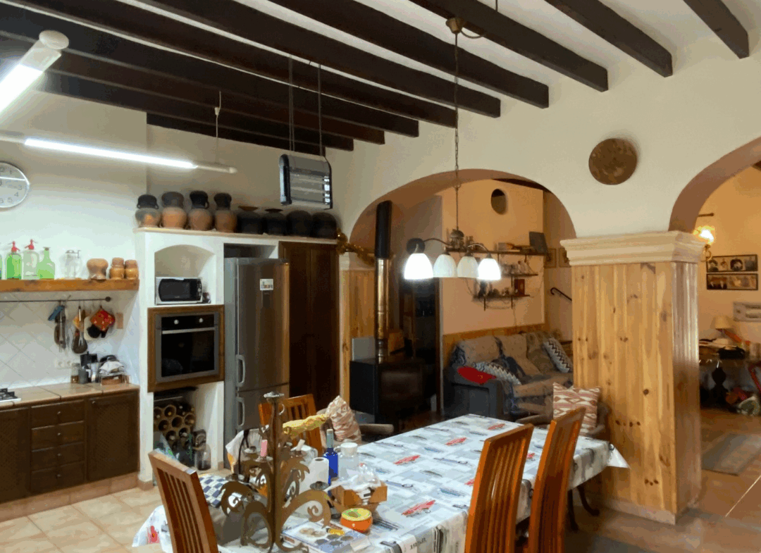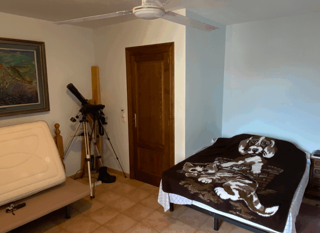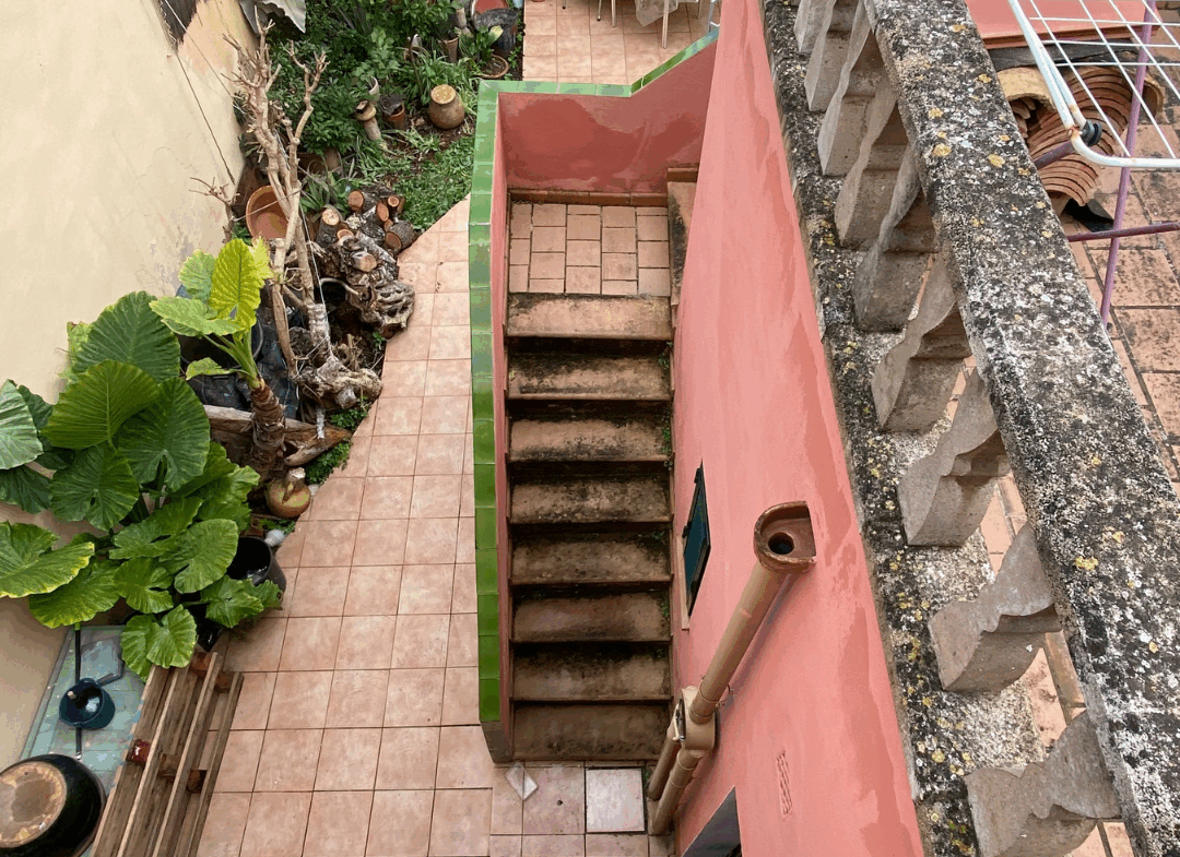 A la sala diàfana on tenim l´entrada principal a la casa també tenim una escala interior que puja al 1r pis on trobarem tres habitacions, un bany i una terrassa.