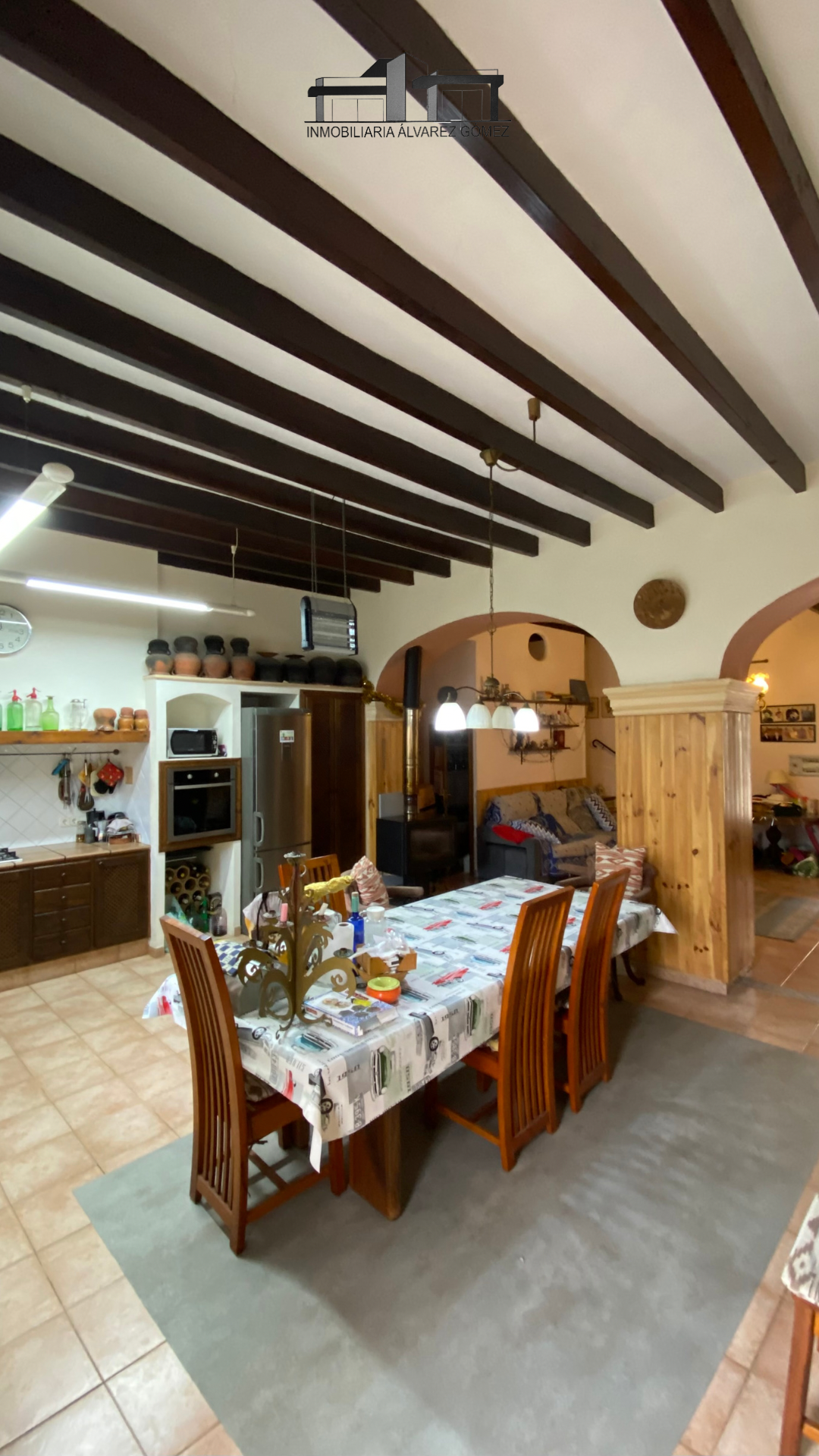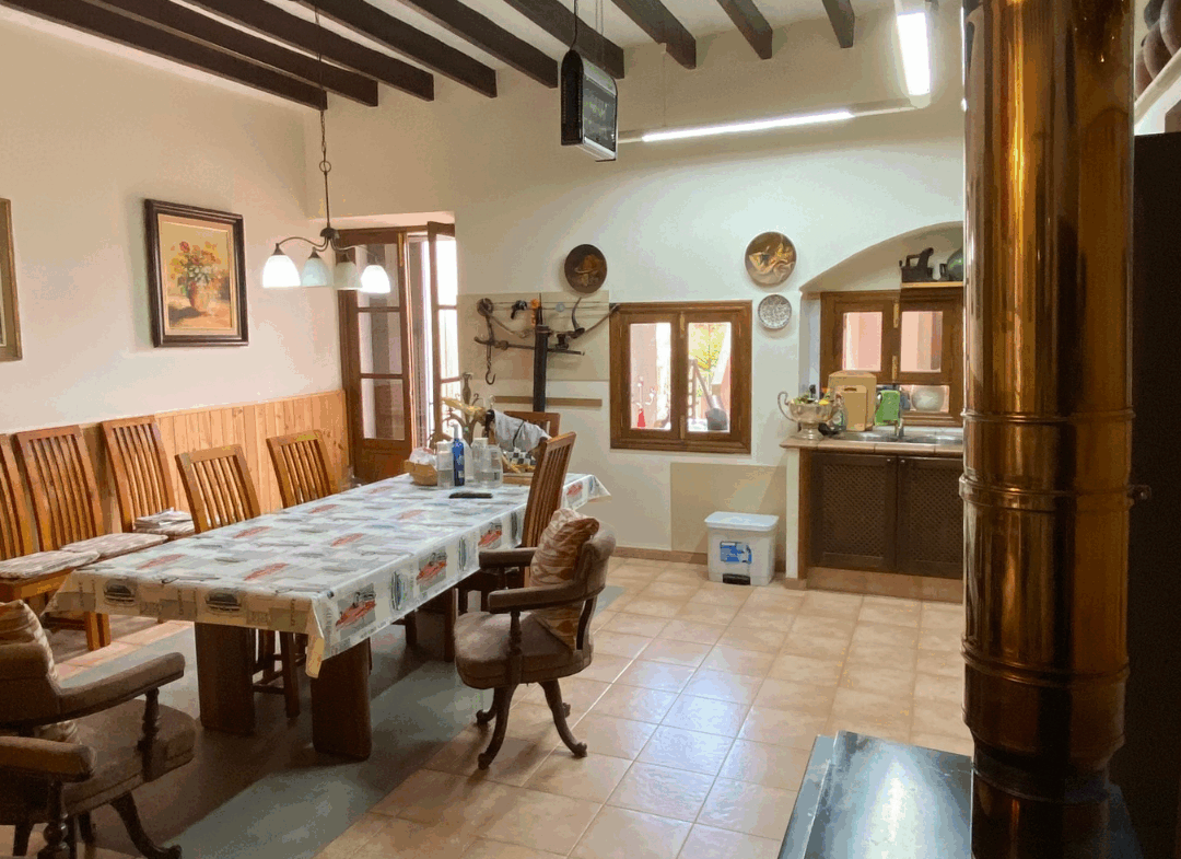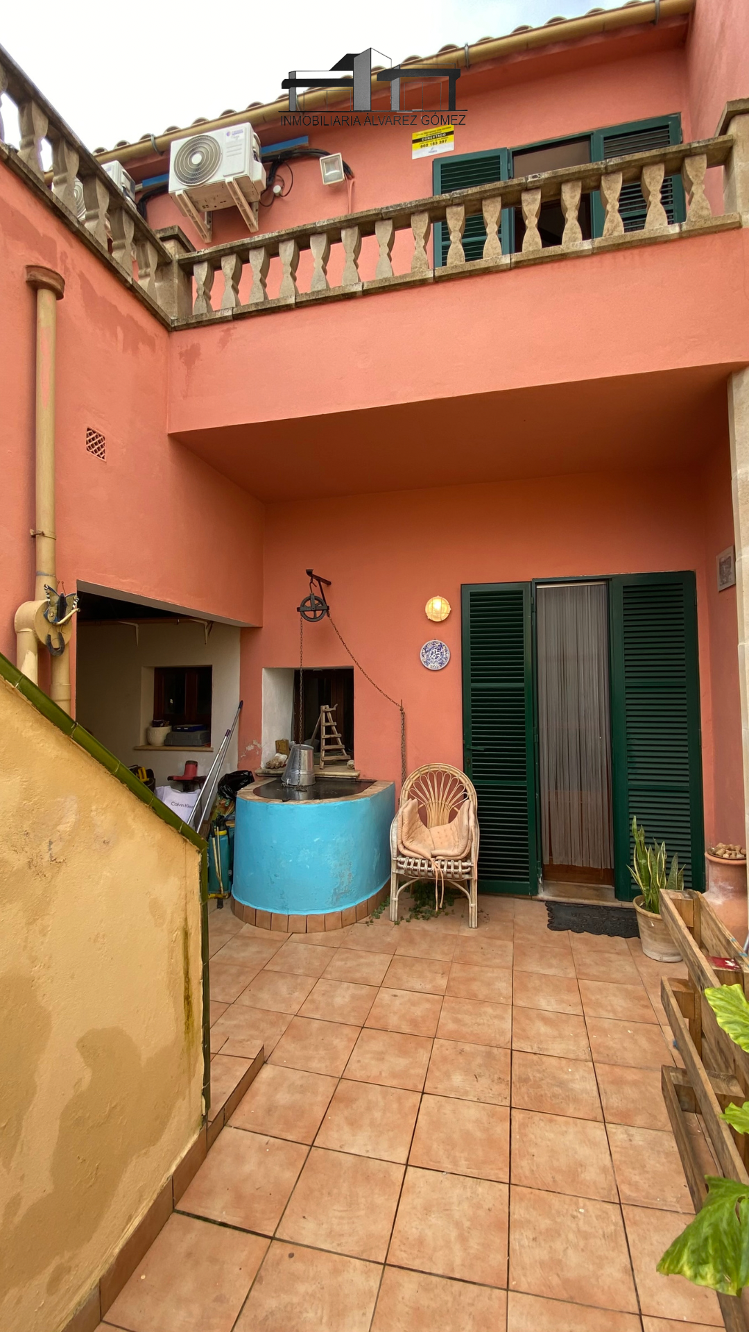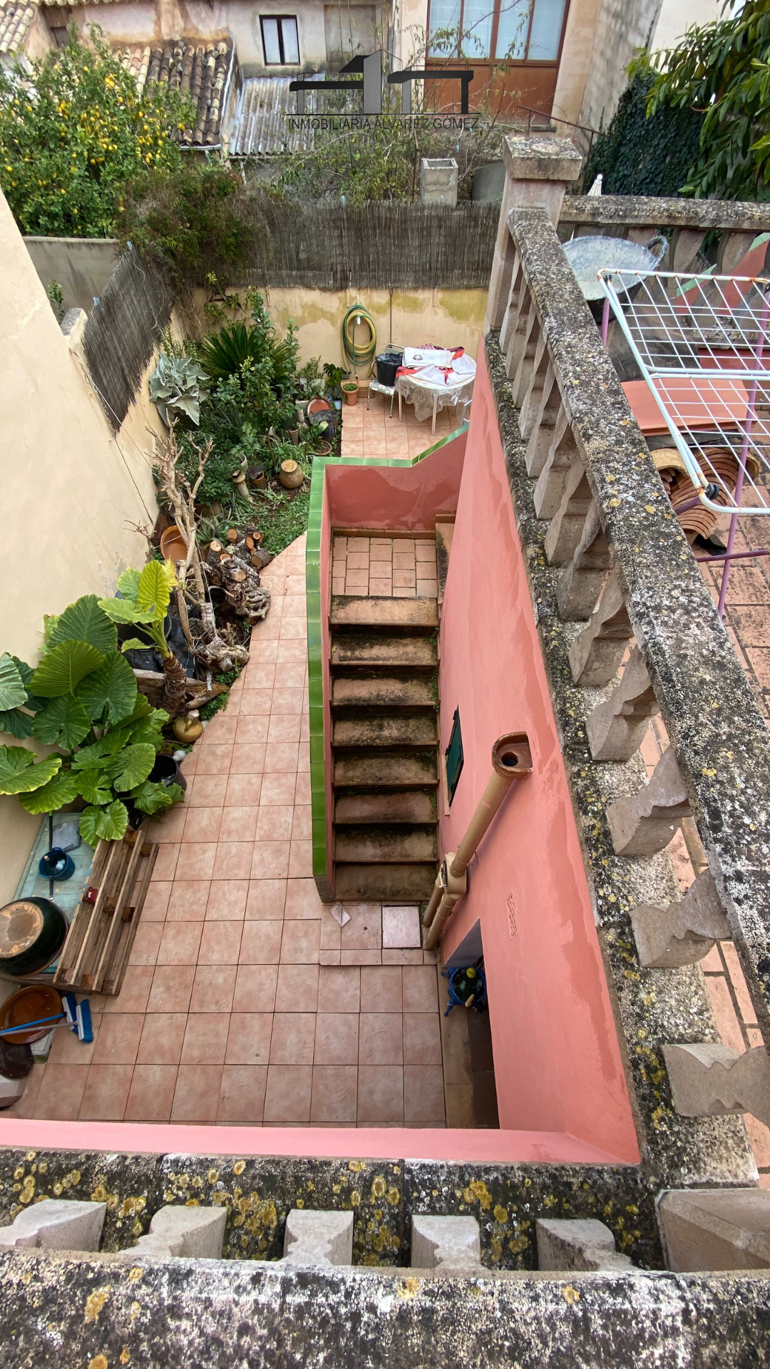 A la planta baixa tenim una entrada, sala, cuina, menjador tot diàfan i accés a la part del corral on hi trobem un bany i safareig. Té un pati d´uns 40m2 amb una escala posterior que puja al 1r pis.