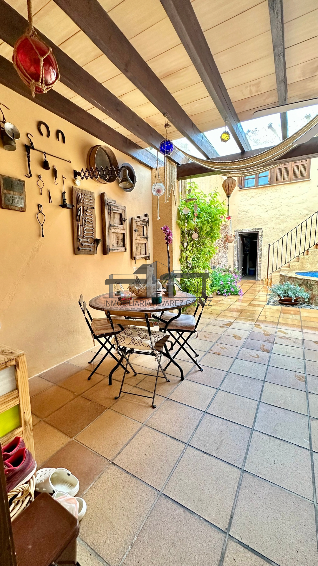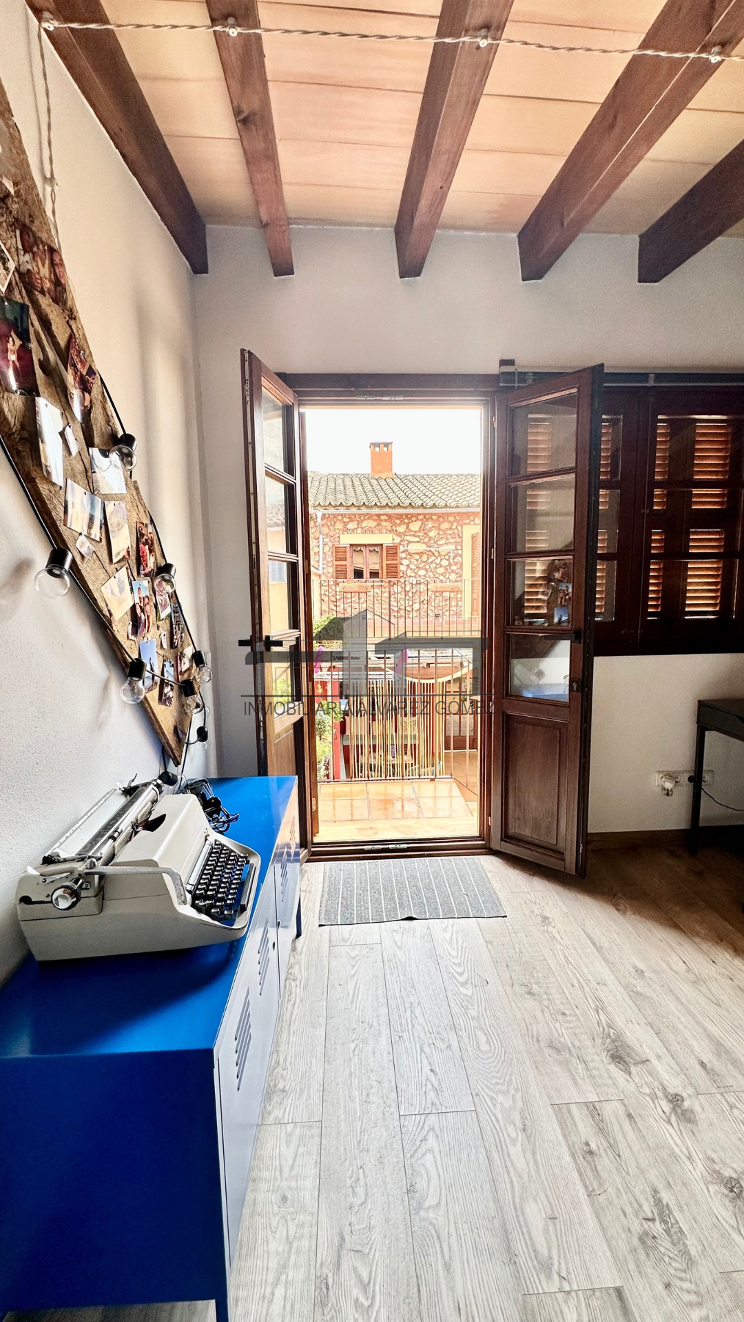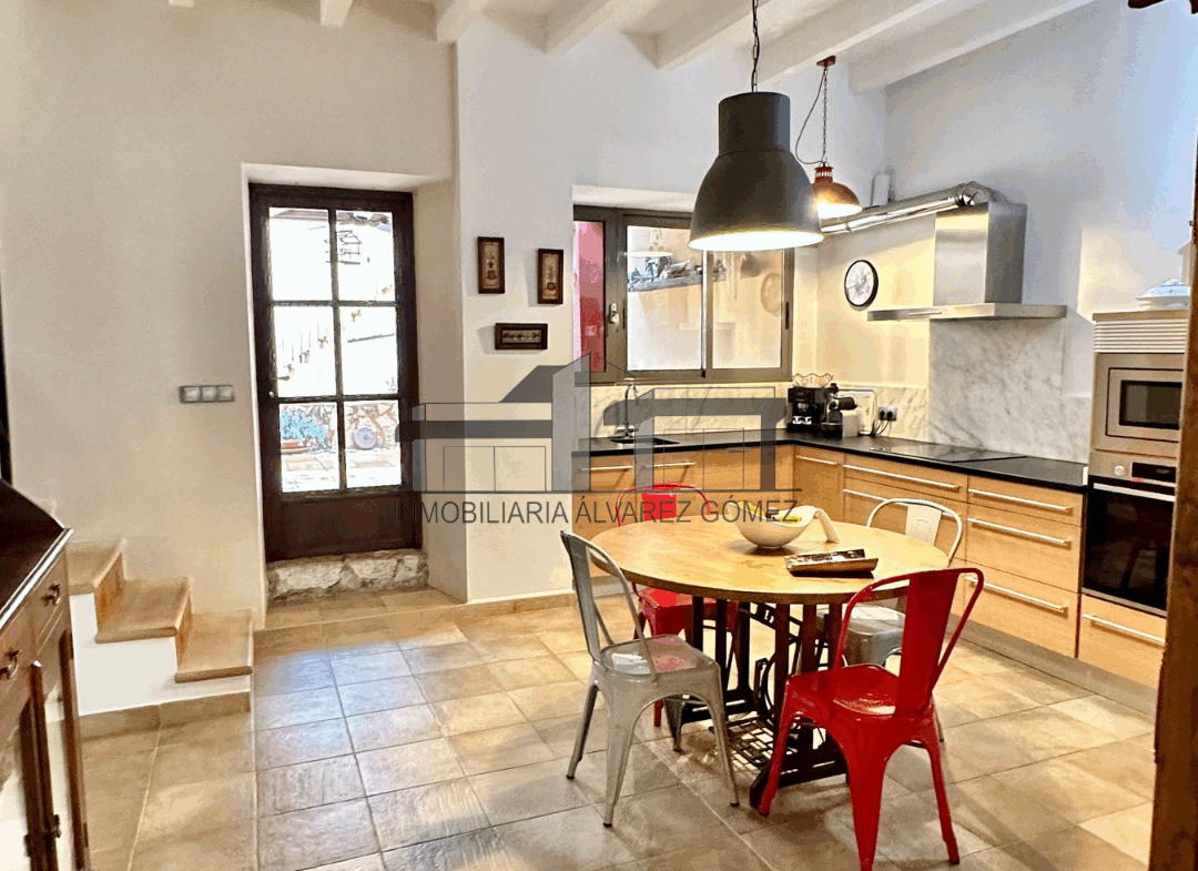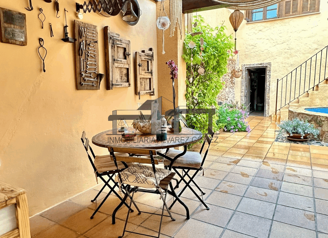 La vivienda está cuidadosamente diseñada con puertas y ventanas de madera con climalit y vigas, manteniendo el encanto del estilo mallorquín con toques modernos y actualizados.