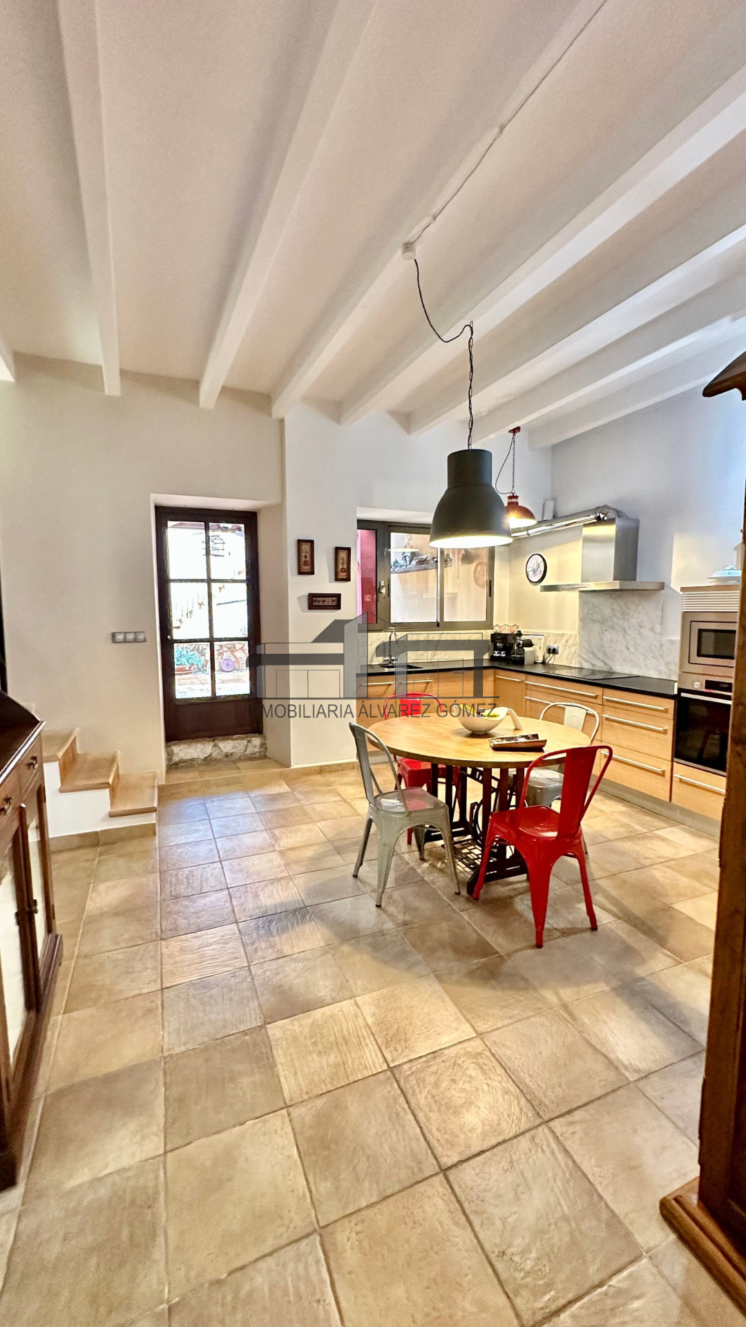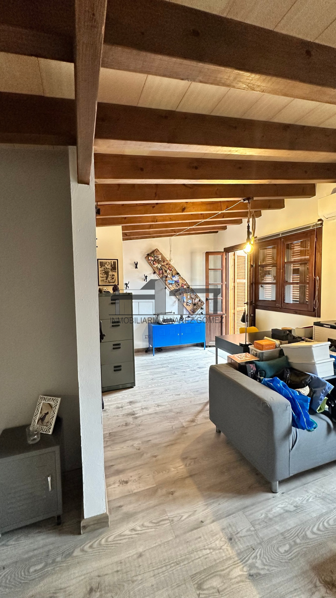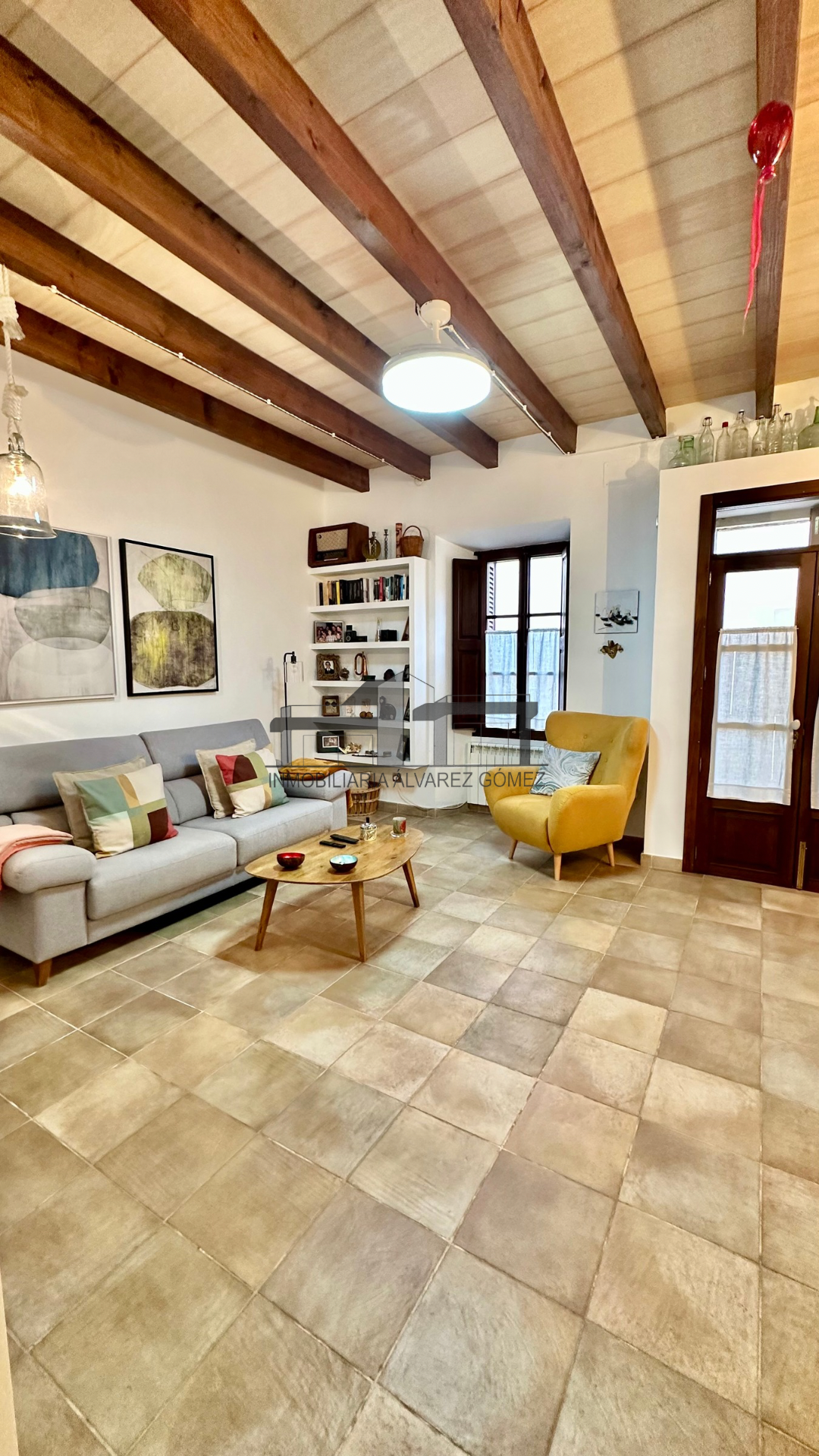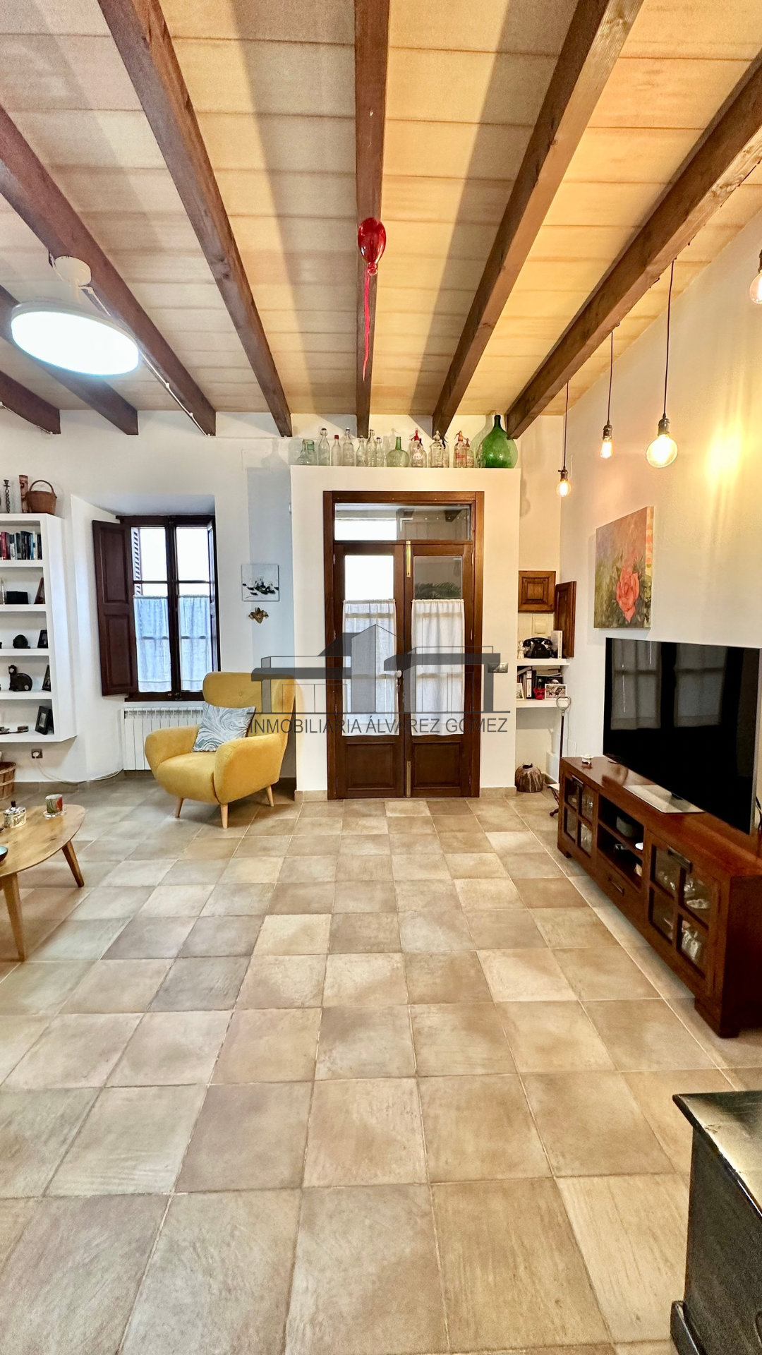 La vivienda está cuidadosamente diseñada con puertas y ventanas de madera con climalit y vigas, manteniendo el encanto del estilo mallorquín con toques modernos y actualizados.