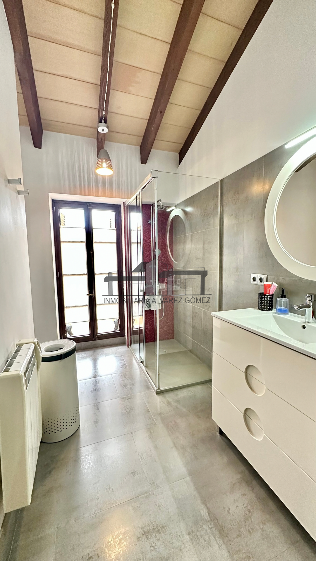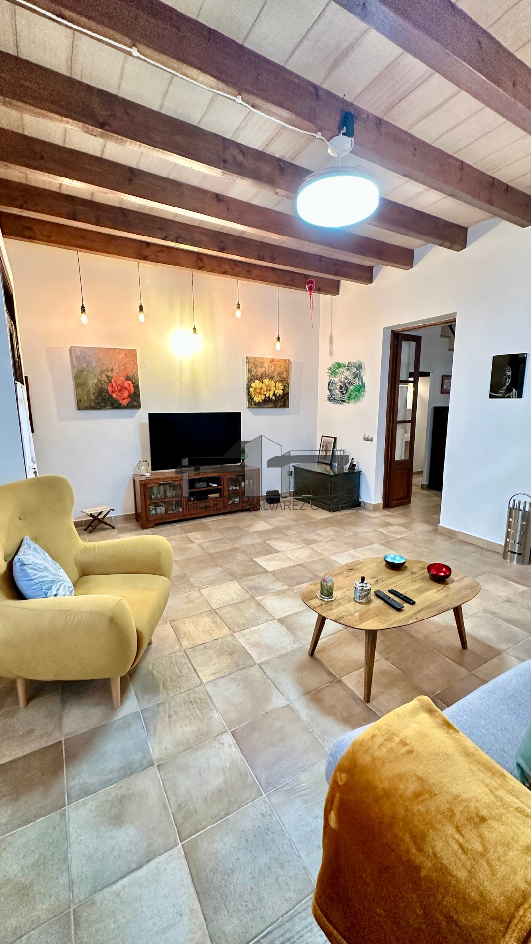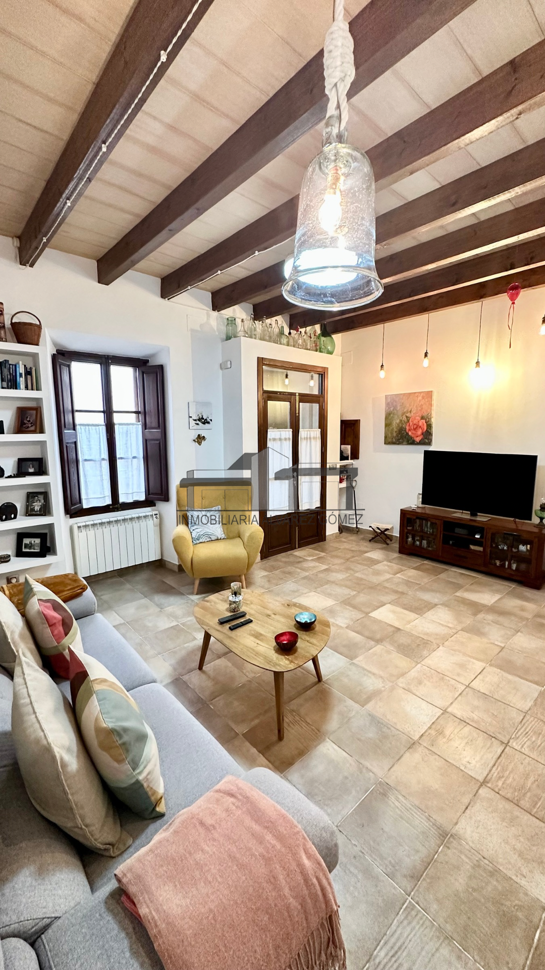 La vivienda está cuidadosamente diseñada con puertas y ventanas de madera con climalit y vigas, manteniendo el encanto del estilo mallorquín con toques modernos y actualizados.