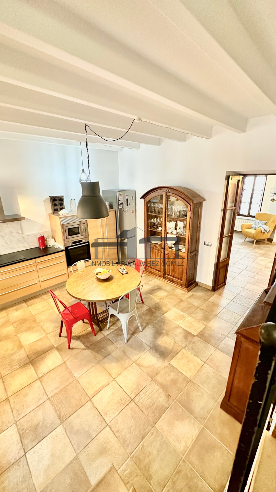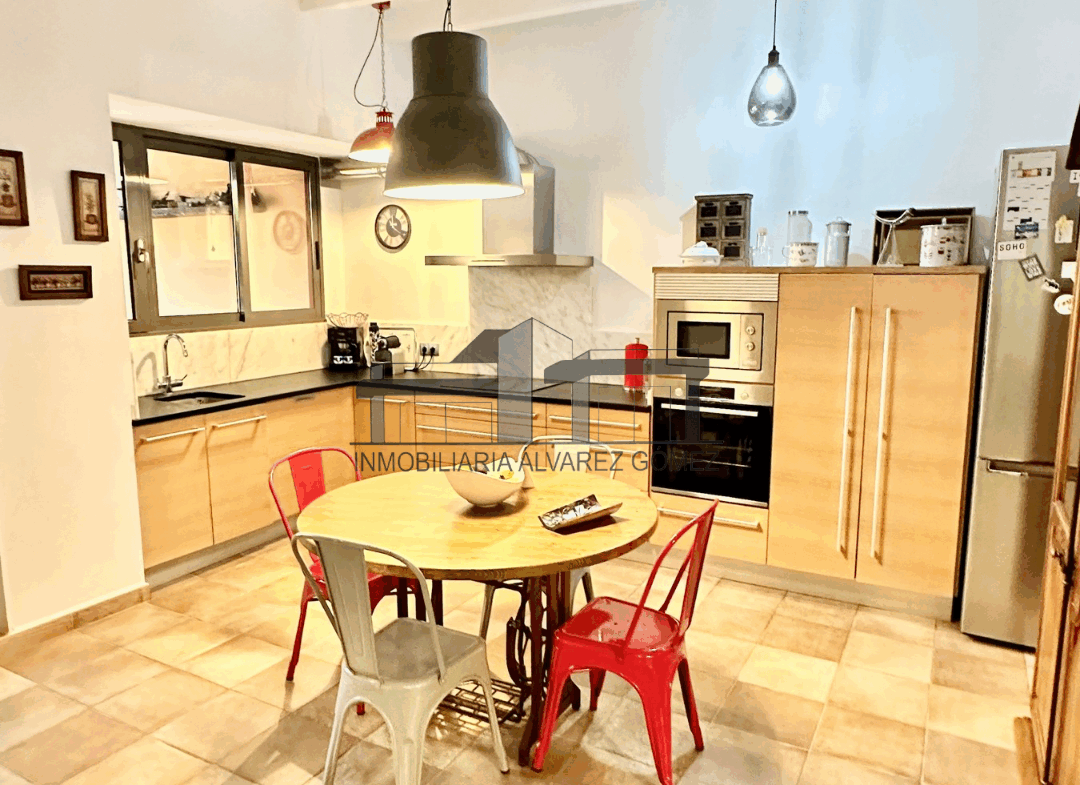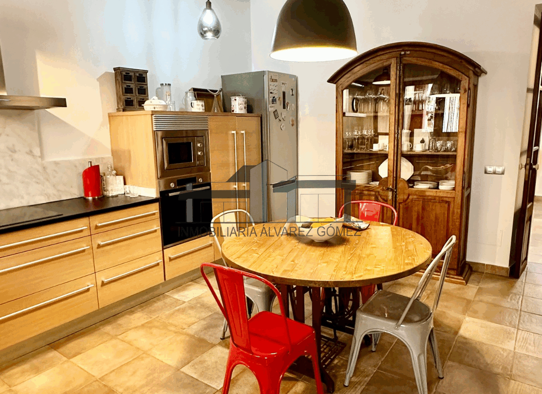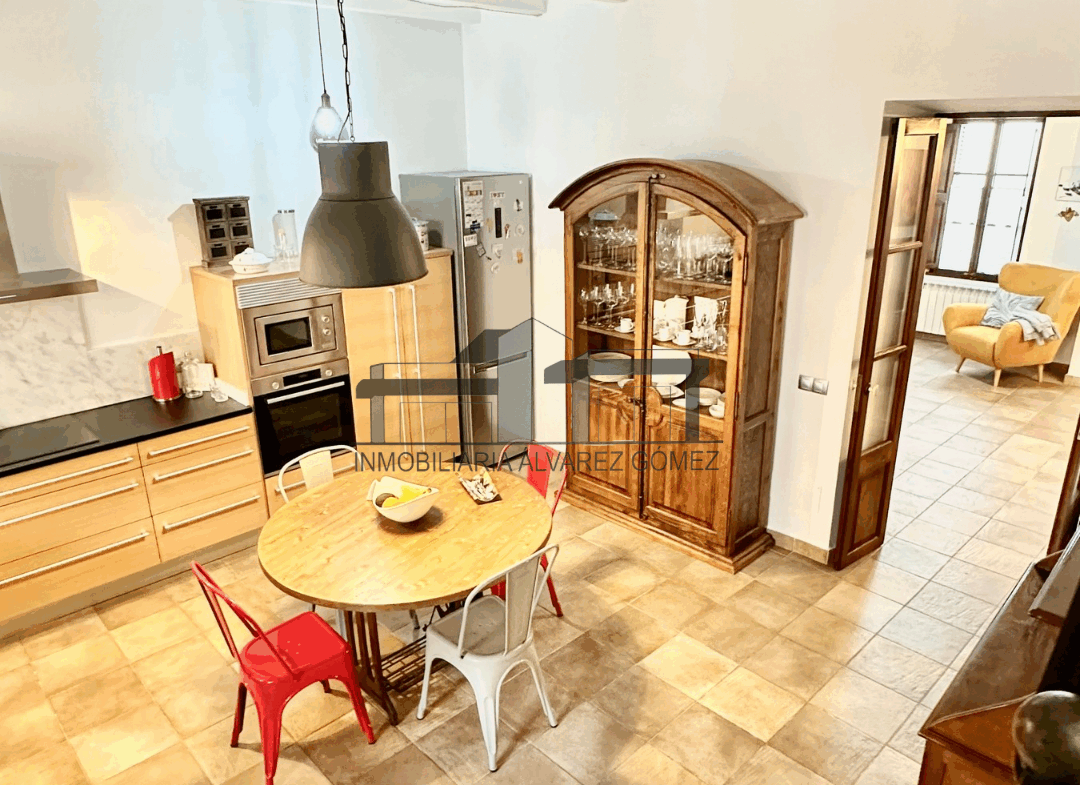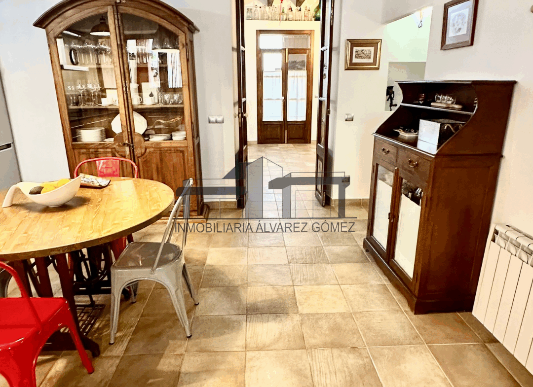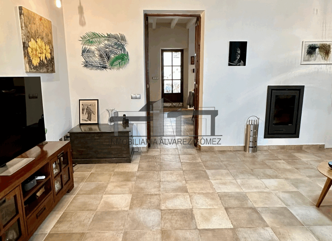 Accedemos a la vivienda desde la calle mediante una gran puerta que nos conduce a un amplio salón, destacando una chimenea empotrada que añade calidez al espacio. A continuación, encontramos una cocina totalmente equipada y espaciosa, con acceso a una encantadora terraza con porche, ideal para disfrutar durante todo el año.