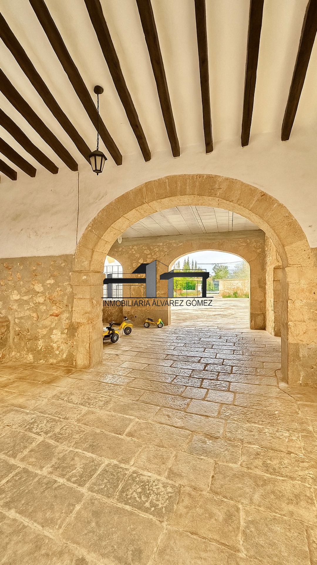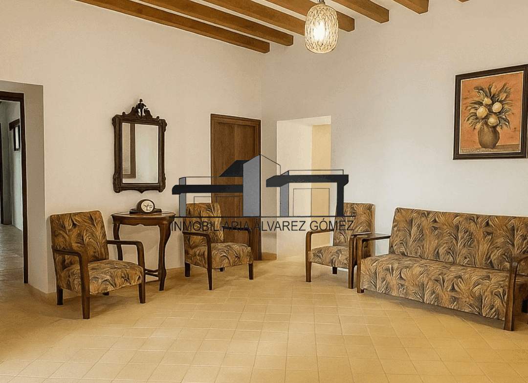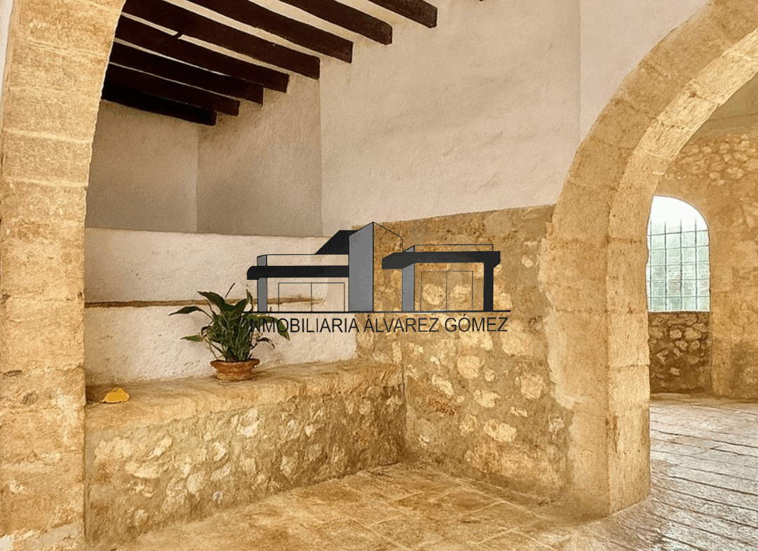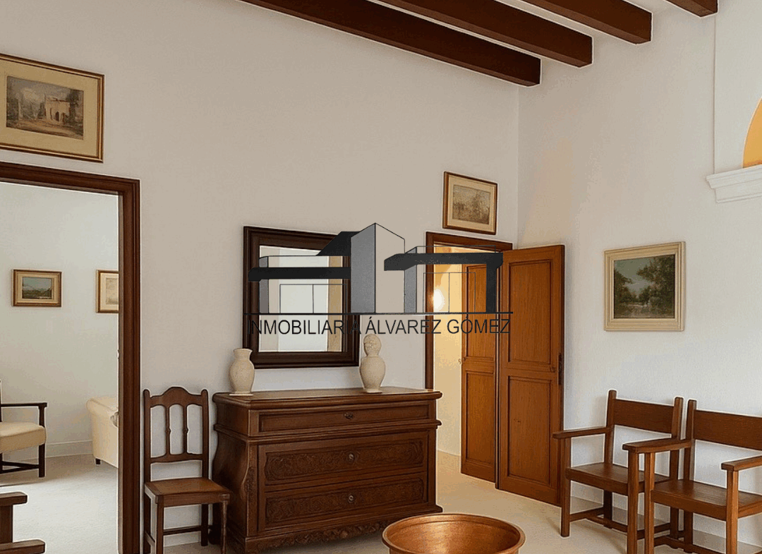 Con una superficie total de 500 m², la planta baja cuenta con 5 amplias habitaciones, un salón-comedor, 2 baños, una bodega típica (celler), y una entrada principal que conserva la majestuosa portassa mallorquina con arcos, la cual da acceso a un amplio patio de 1.200 m² y un extenso huerto de 2.000 m².