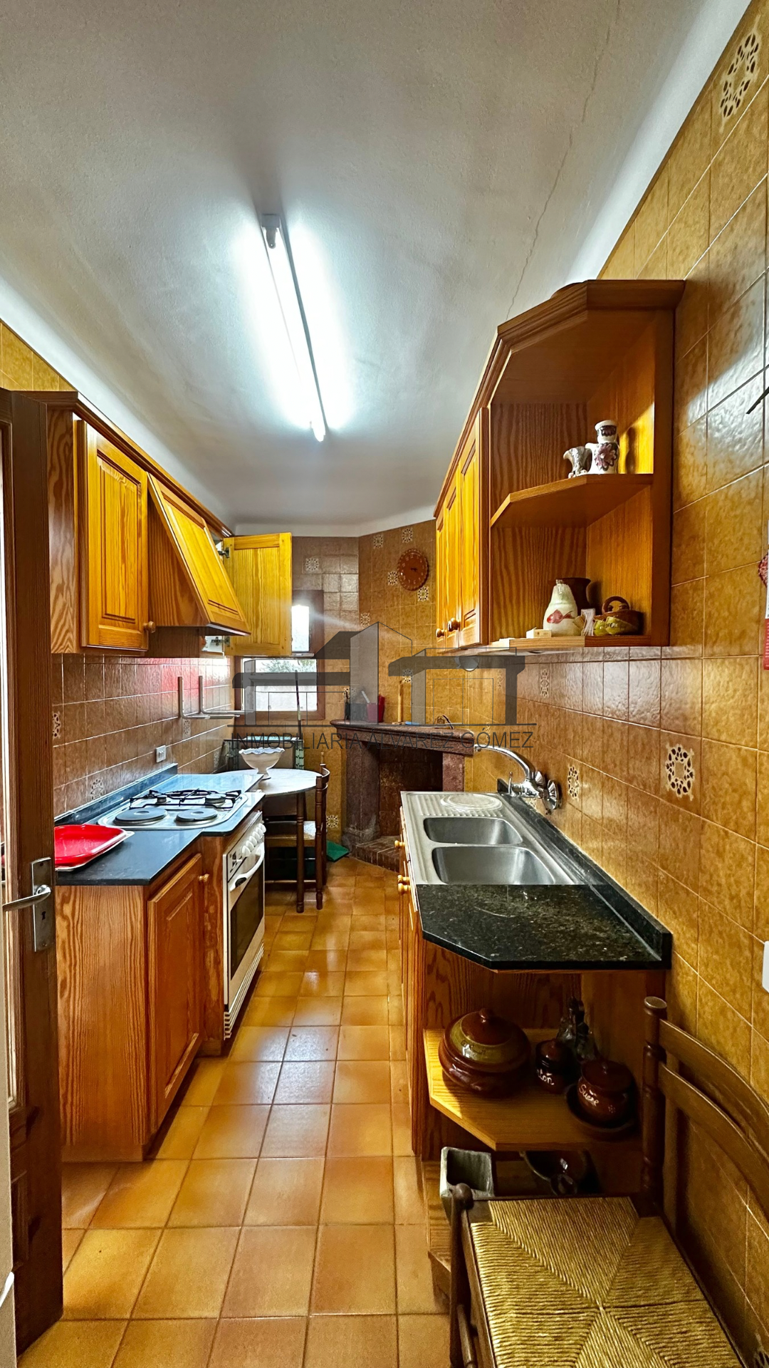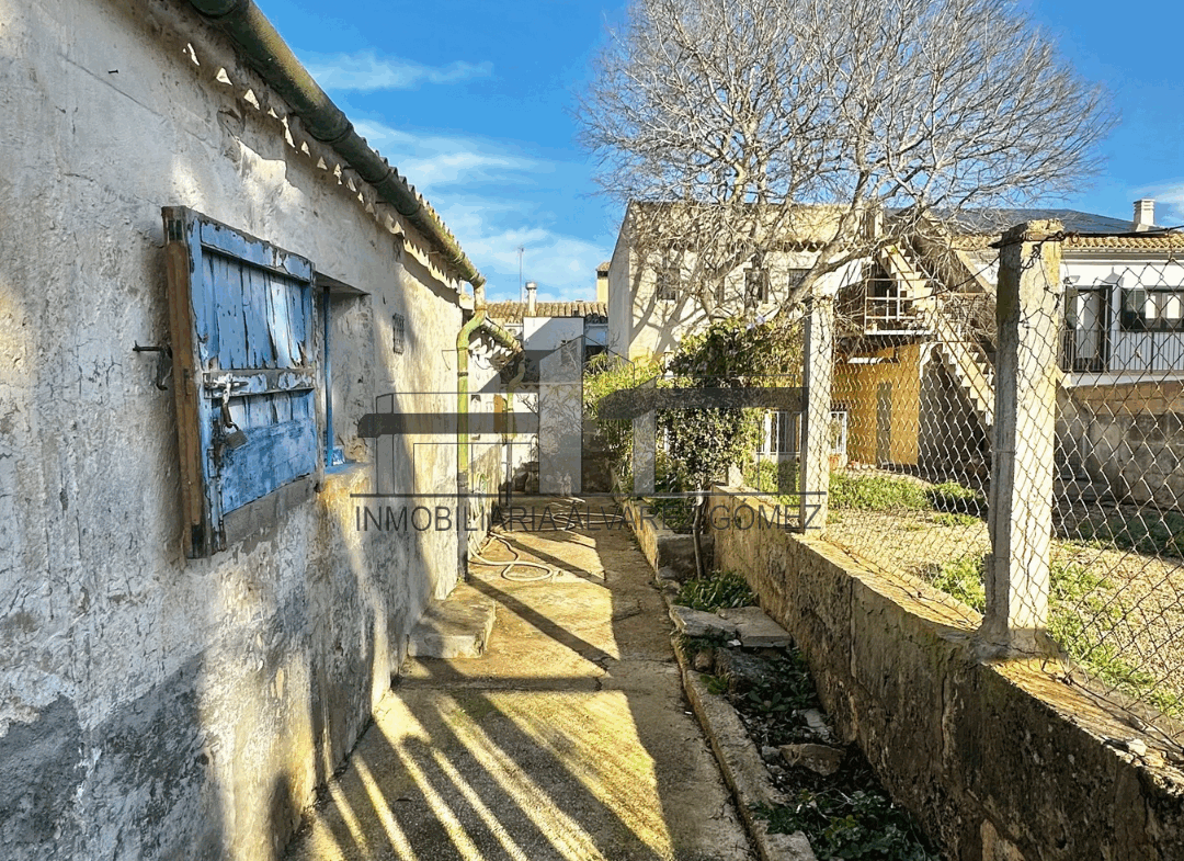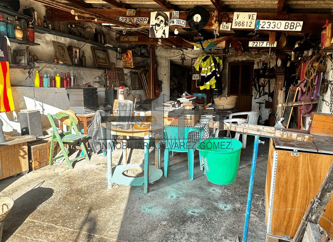 Destaca su amplio patio, donde se encuentran varias casetas anexas que incluyen un baño exterior antiguo, un horno de leña, y un garaje, proporcionando un gran espacio adicional para diferentes usos.